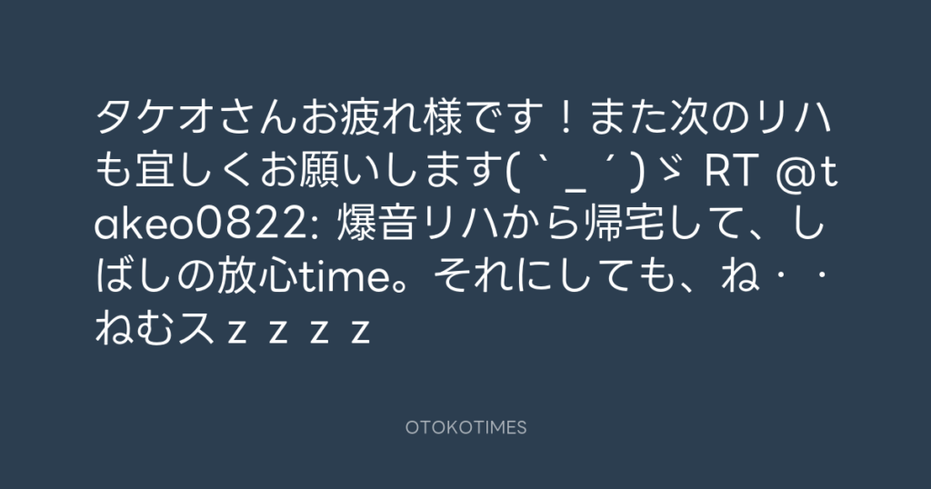 タケオさんお疲れ様です!また次のリハも宜しくお願いします(`_´)ゞ RT @takeo082... -