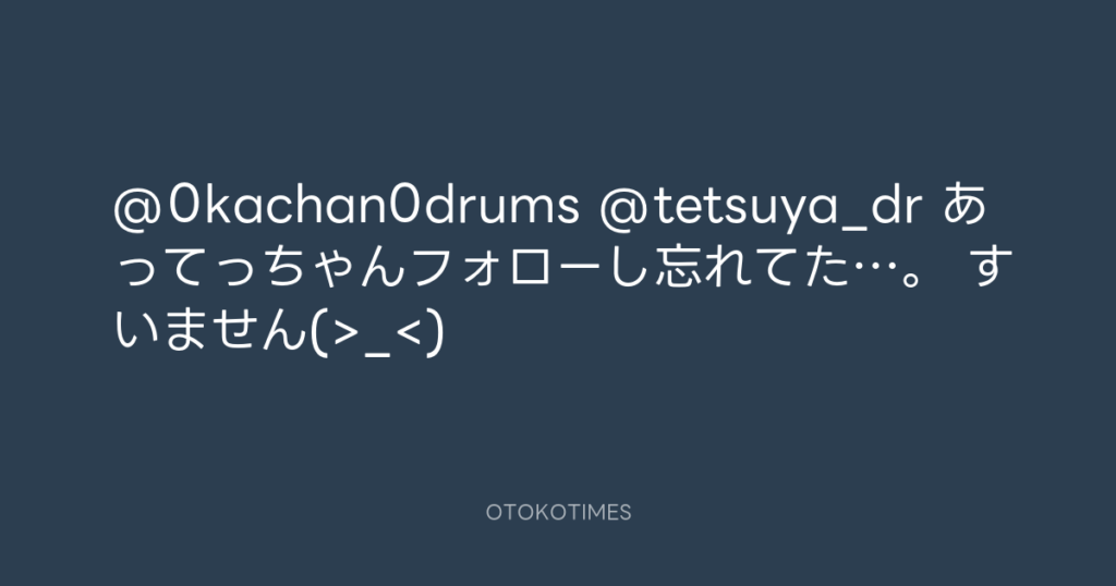 @0kachan0drums @tetsuya_dr あってっちゃんフォローし忘れてた…。 すいません(>... -