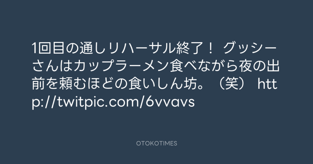 1回目の通しリハーサル終了! グッシーさんはカップラーメン食べながら夜の出前を... -