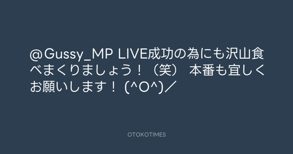 @Gussy_MP LIVE成功の為にも沢山食べまくりましょう!(笑) 本番も宜しくお願いし... -