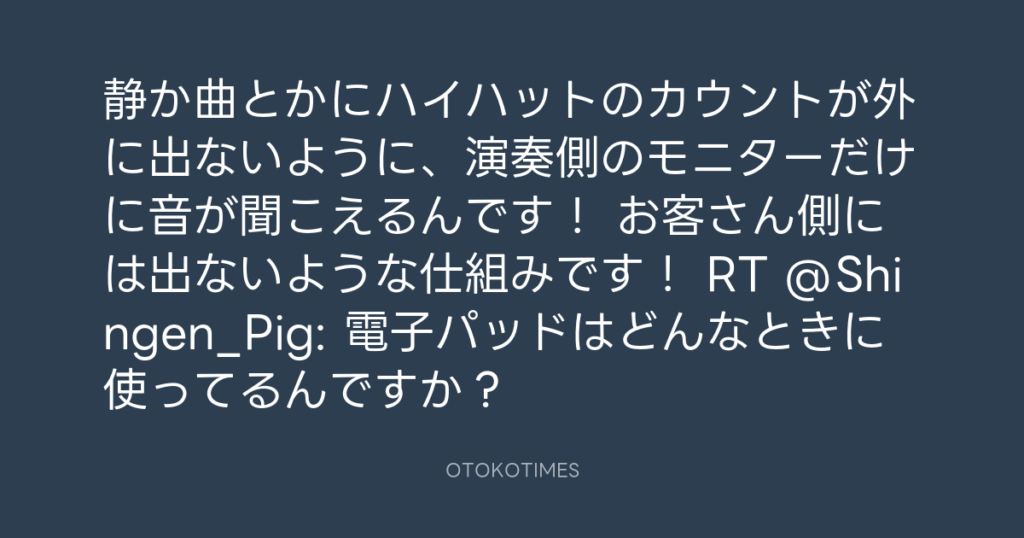 静か曲とかにハイハットのカウントが外に出ないように、演奏側のモニターだけに音... -