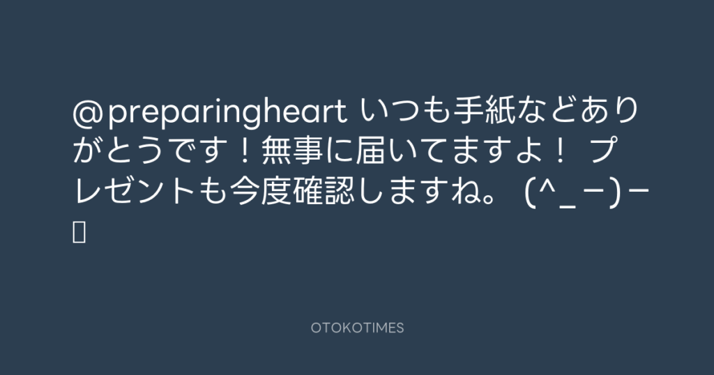 @preparingheart いつも手紙などありがとうです!無事に届いてますよ! プレゼント... -