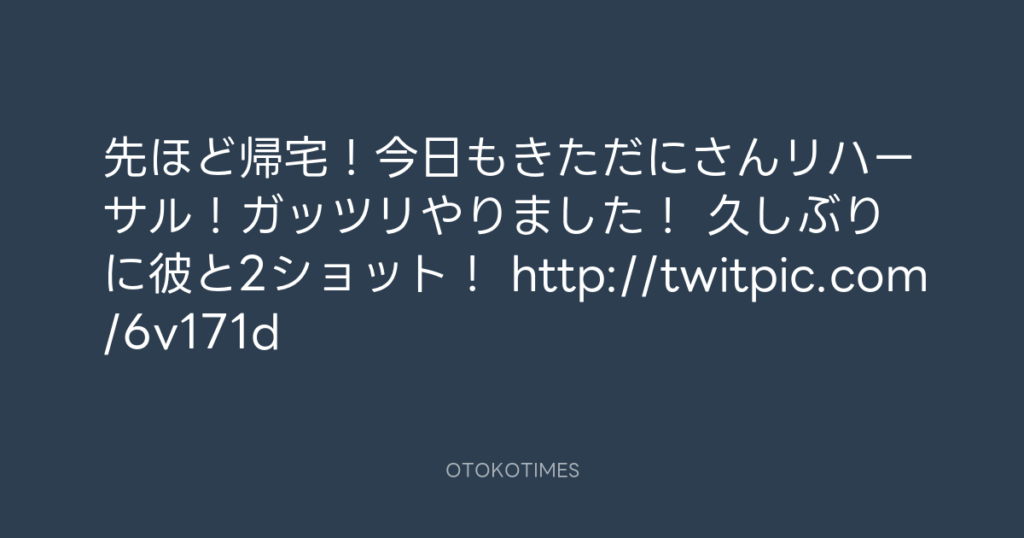 先ほど帰宅!今日もきただにさんリハーサル!ガッツリやりました! 久しぶりに彼と... -
