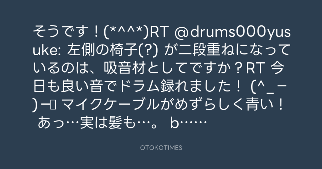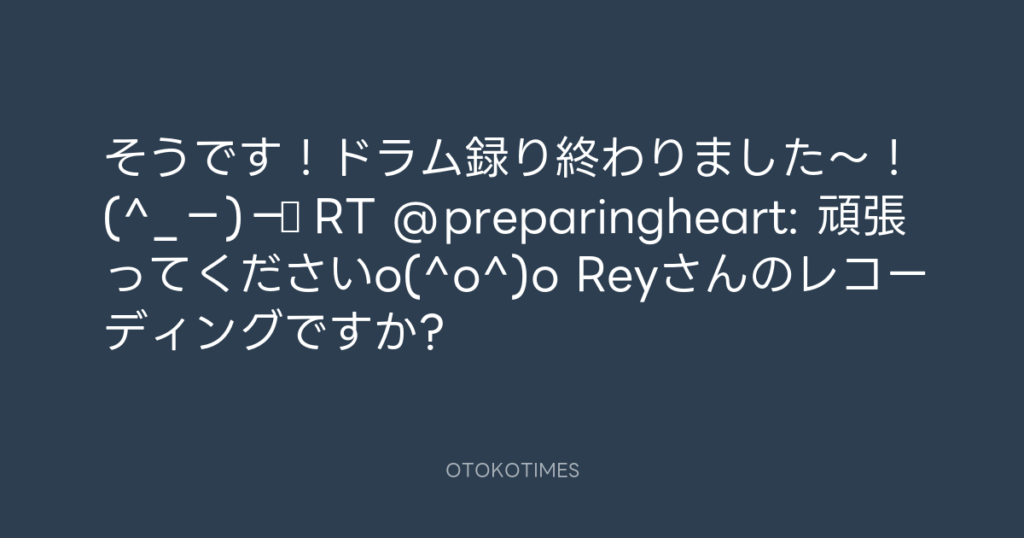 そうです!ドラム録り終わりました~!(^_−)−☆ RT @preparingheart: 頑張ってくだ... -