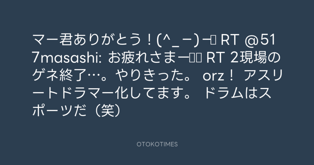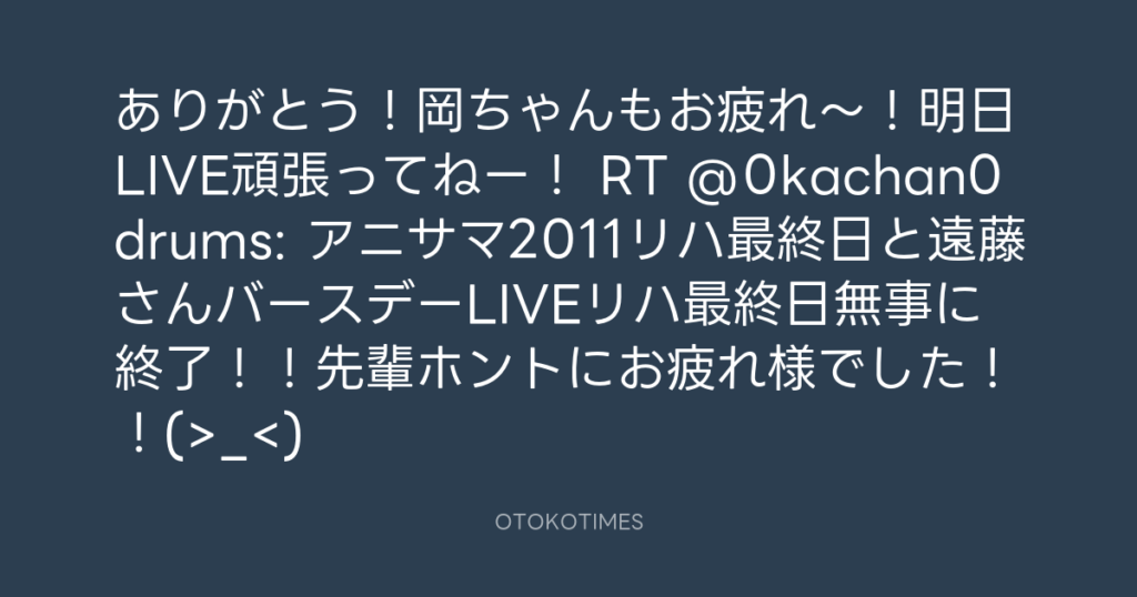 ありがとう!岡ちゃんもお疲れ~!明日LIVE頑張ってねー! RT @0kachan0drums: ア... -