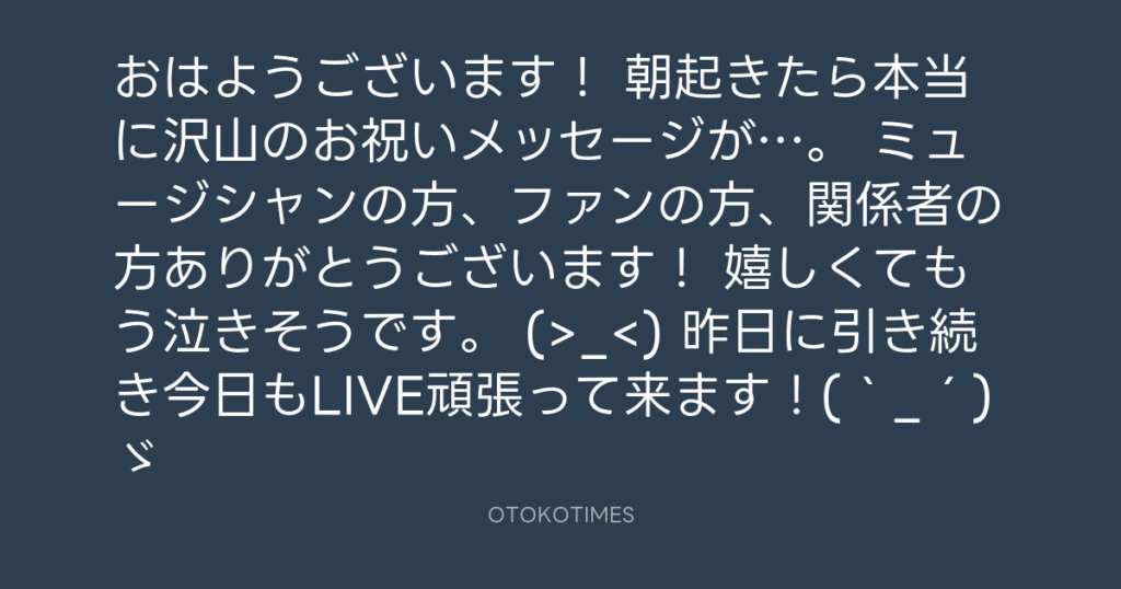 おはようございます! 朝起きたら本当に沢山のお祝いメッセージが…。 ミュージシャ... -