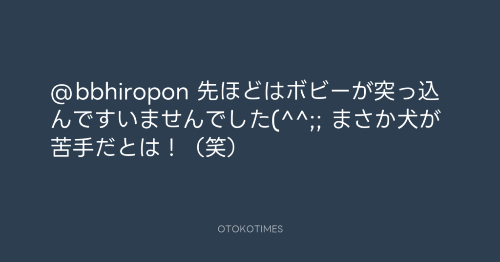 @bbhiropon 先ほどはボビーが突っ込んですいませんでした(^^;; まさか犬が苦手だと...