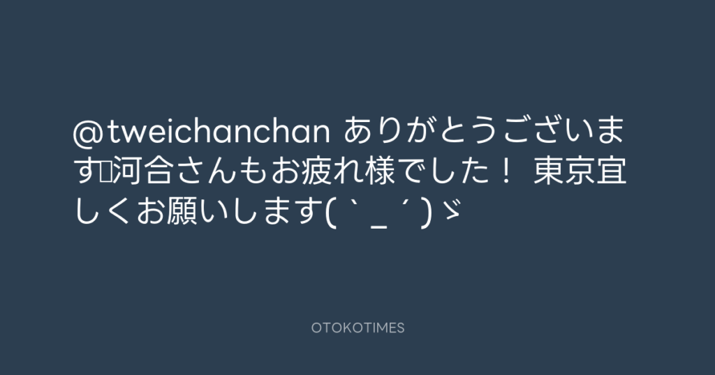 @tweichanchan ありがとうございます☆河合さんもお疲れ様でした! 東京宜しくお願... -