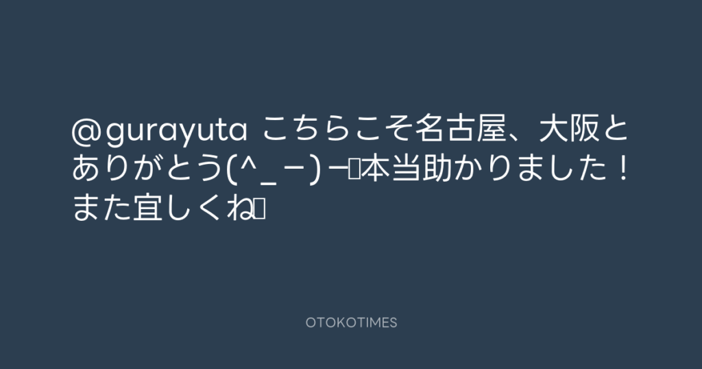 @gurayuta こちらこそ名古屋、大阪とありがとう(^_−)−☆本当助かりました!また宜し... -