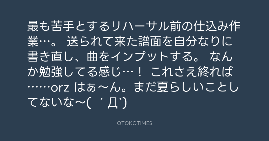 最も苦手とするリハーサル前の仕込み作業…。 送られて来た譜面を自分なりに書き直... -