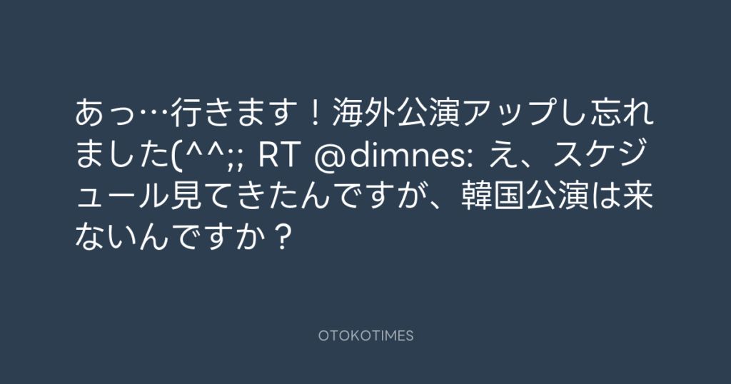 あっ…行きます!海外公演アップし忘れました(^^;; RT @dimnes: え、スケジュール見... -