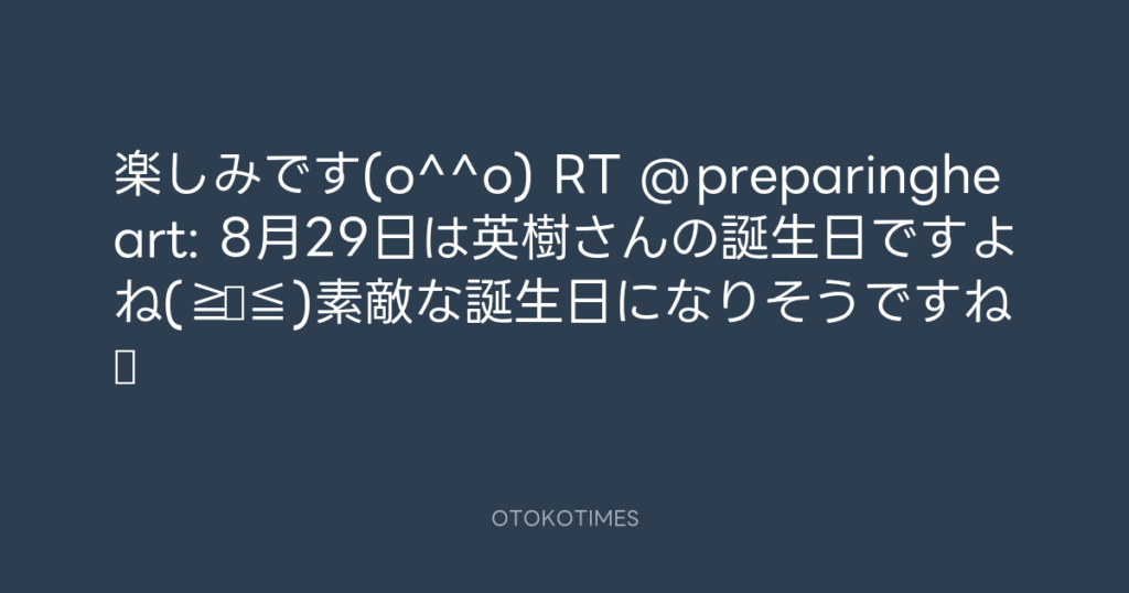 楽しみです(o^^o) RT @preparingheart: 8月29日は英樹さんの誕生日ですよね(≧▽≦)素... -