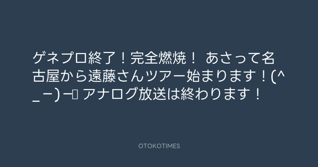ゲネプロ終了!完全燃焼! あさって名古屋から遠藤さんツアー始まります!(^_−)−☆ ... -