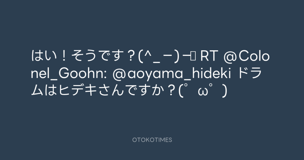 はい!そうです?(^_−)−☆ RT @Colonel_Goohn: @aoyama_hideki ドラムはヒデキさん... -
