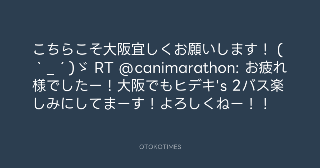 こちらこそ大阪宜しくお願いします! (`_´)ゞ RT @canimarathon: お疲れ様でした... -