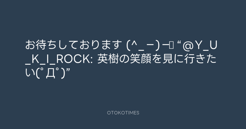 お待ちしております (^_−)−☆ “@Y_U_K_I_ROCK: 英樹の笑顔を見に行きたい(゚Д゚)”