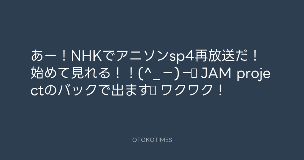 あー!NHKでアニソンsp4再放送だ! 始めて見れる!!(^_−)−☆ JAM projectのバック... -