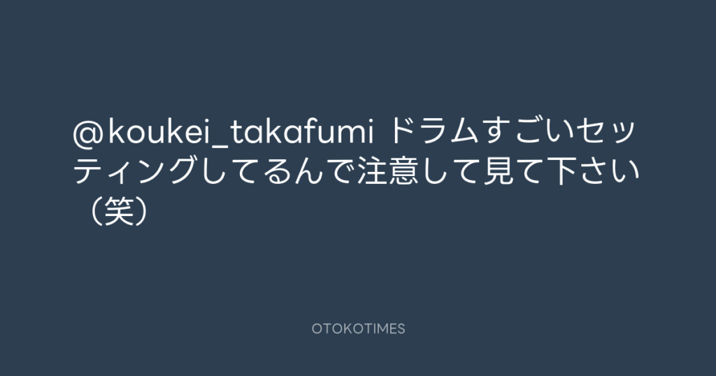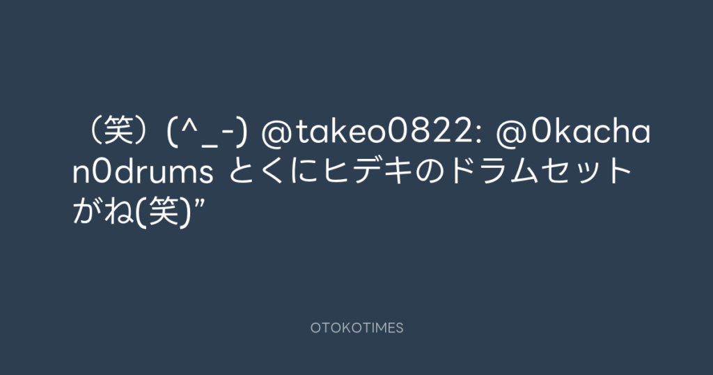(笑)(^_-) @takeo0822: @0kachan0drums とくにヒデキのドラムセットがね(笑)” -