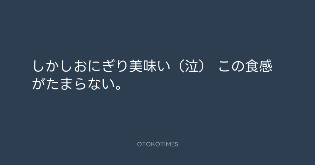 しかしおにぎり美味い(泣) この食感がたまらない。 -