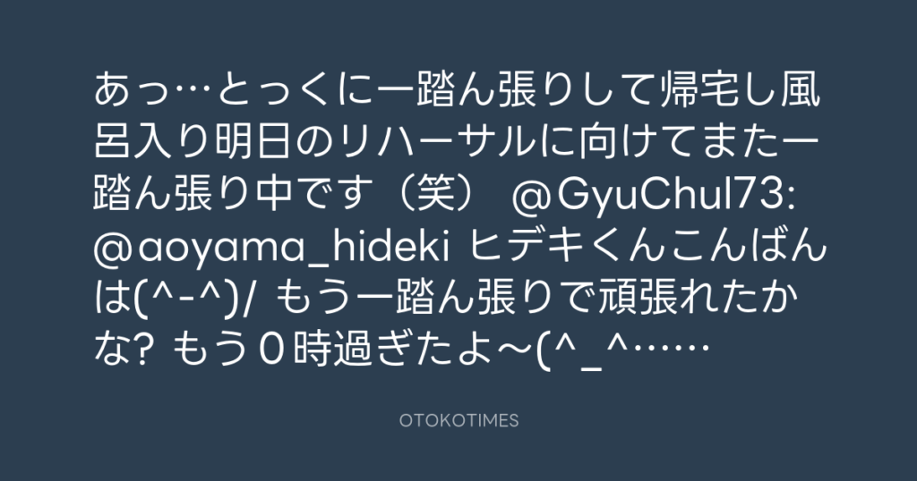 あっ…とっくに一踏ん張りして帰宅し風呂入り明日のリハーサルに向けてまた一踏ん張... -