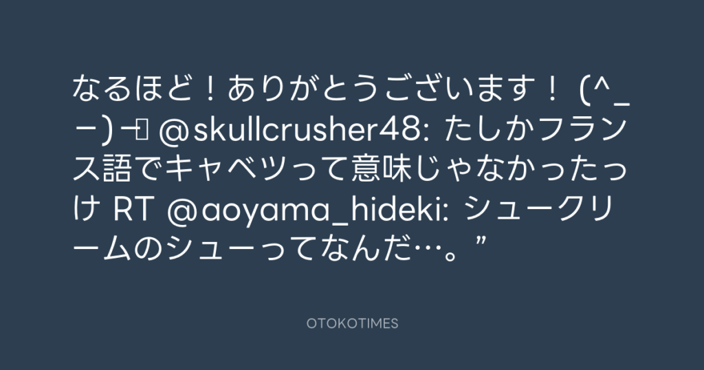 なるほど!ありがとうございます! (^_−)−☆ @skullcrusher48: たしかフランス語で... -