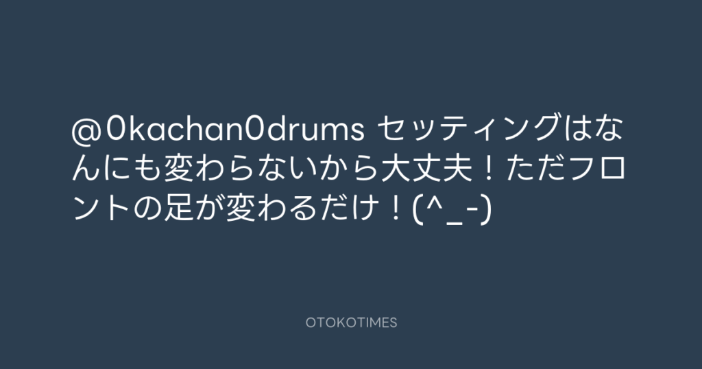 @0kachan0drums セッティングはなんにも変わらないから大丈夫!ただフロントの足が... -