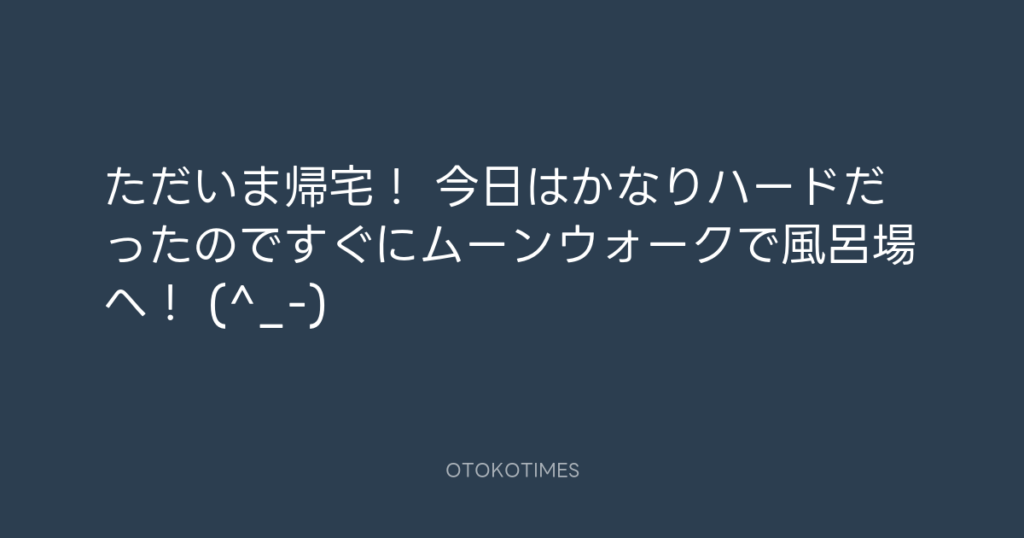ただいま帰宅! 今日はかなりハードだったのですぐにムーンウォークで風呂場へ! (... -