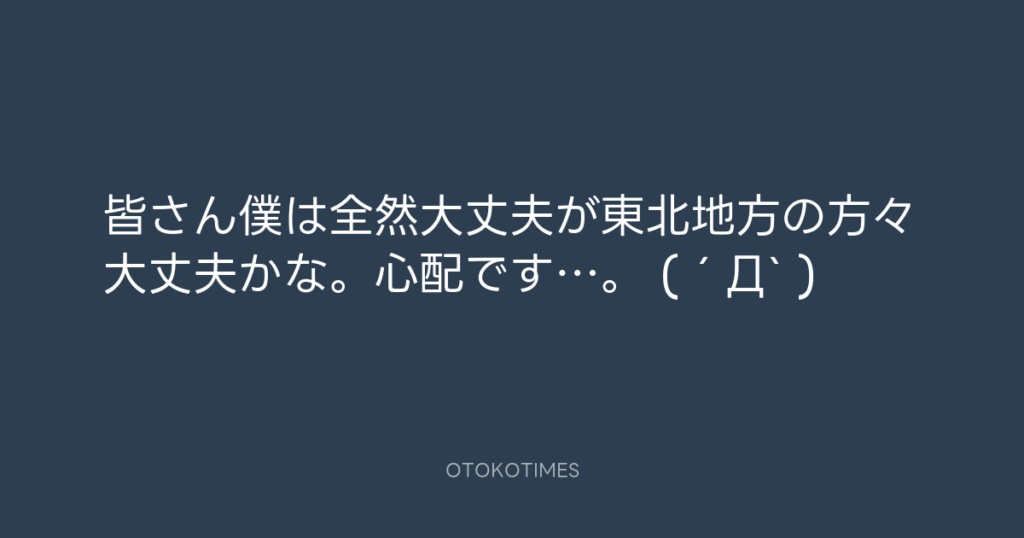 皆さん僕は全然大丈夫が東北地方の方々大丈夫かな。心配です…。 (´Д` ) -