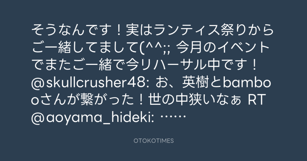 そうなんです!実はランティス祭りからご一緒してまして(^^;; 今月のイベントでま... -