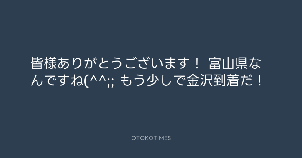 皆様ありがとうございます! 富山県なんですね(^^;; もう少しで金沢到着だ! -