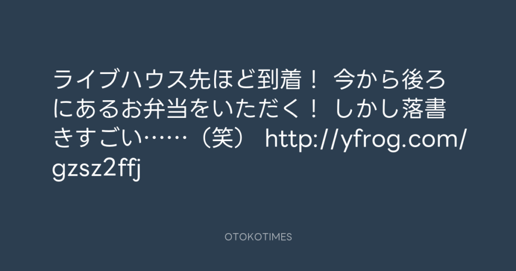 ライブハウス先ほど到着! 今から後ろにあるお弁当をいただく! しかし落書きすご... -