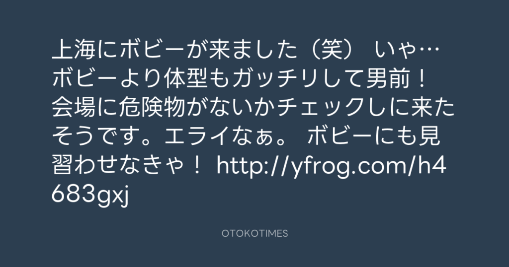 上海にボビーが来ました(笑) いゃ…ボビーより体型もガッチリして男前! 会場に危... -