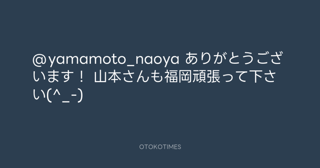 @yamamoto_naoya ありがとうございます! 山本さんも福岡頑張って下さい(^_-) -