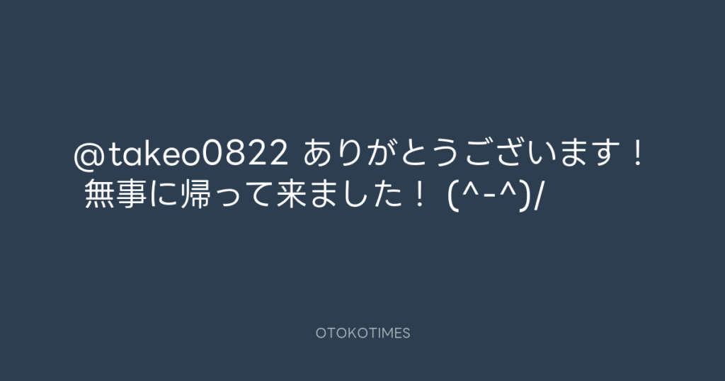 @takeo0822 ありがとうございます! 無事に帰って来ました! (^-^)/ -