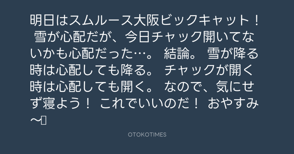 明日はスムルース大阪ビックキャット! 雪が心配だが、今日チャック開いてないかも... -