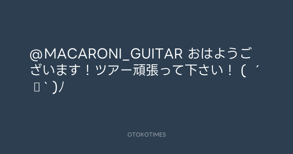 @MACARONI_GUITAR おはようございます!ツアー頑張って下さい! ( ´ ▽ ` )ノ -
