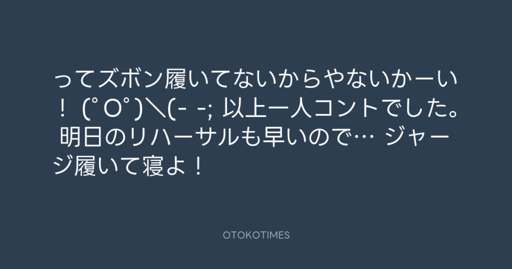 ってズボン履いてないからやないかーい! (゚O゚)\(- -; 以上一人コントでした。 明...