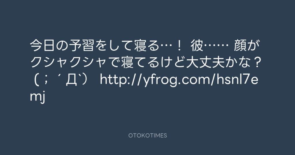 今日の予習をして寝る…! 彼…… 顔がクシャクシャで寝てるけど大丈夫かな? (;´Д`... -