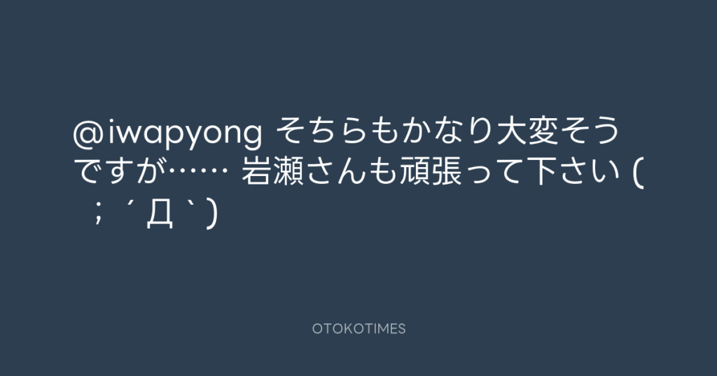 @iwapyong そちらもかなり大変そうですが…… 岩瀬さんも頑張って下さい ( ;´Д`) -