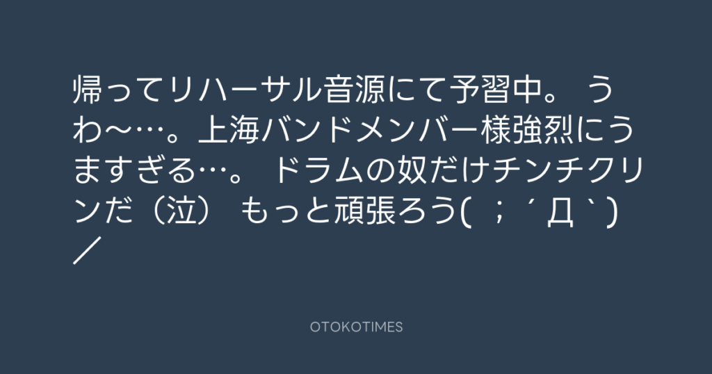 帰ってリハーサル音源にて予習中。 うわ~…。上海バンドメンバー様強烈にうますぎ... -