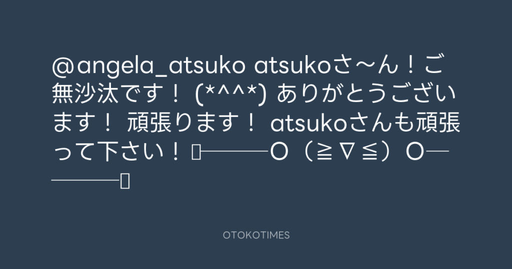 @angela_atsuko atsukoさ~ん!ご無沙汰です! (*^^*) ありがとうございます! 頑... -