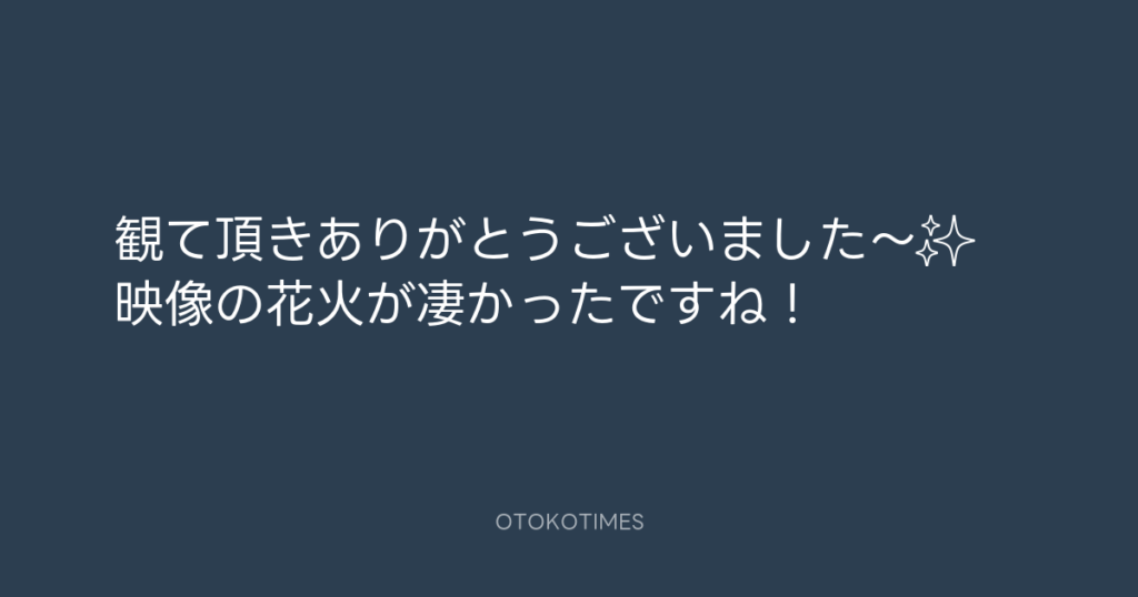 観て頂きありがとうございました〜✨ 映像の花火が凄かったですね!🎇 -