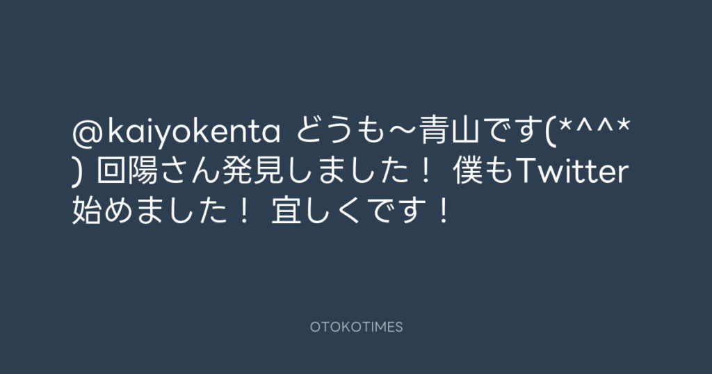 @kaiyokenta どうも~青山です(*^^*) 回陽さん発見しました! 僕もTwitter始めまし... -