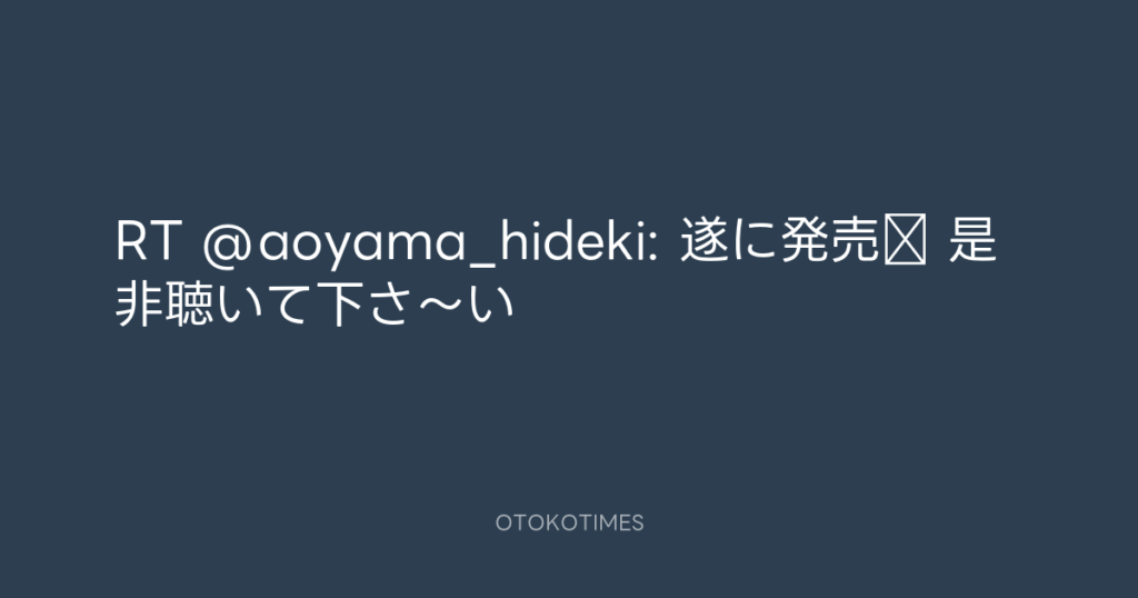 RT @aoyama_hideki: 遂に発売‼️ 是非聴いて下さ〜い💽 -