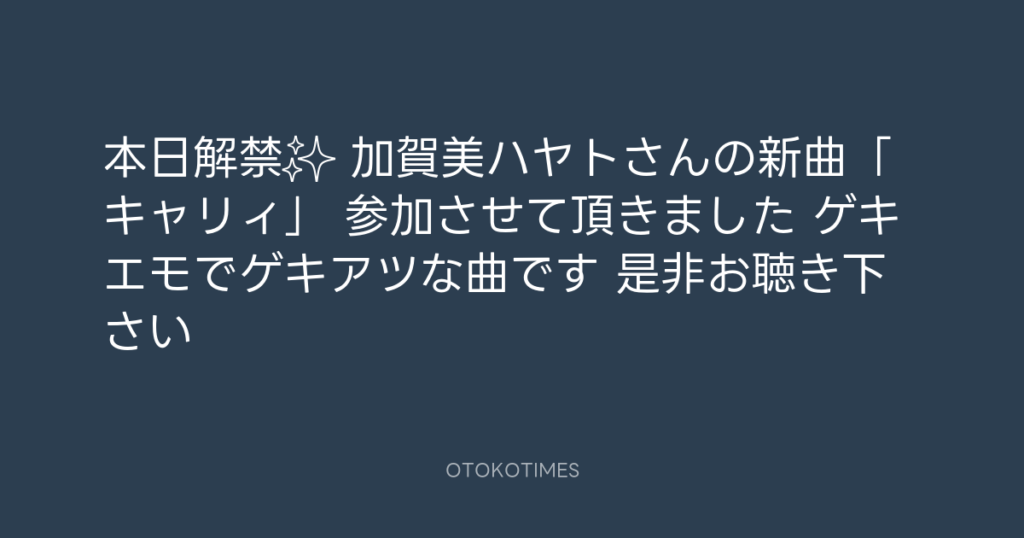 本日解禁✨ 加賀美ハヤトさんの新曲「キャリィ」 参加させて頂きました🥁 ゲキエモ... -