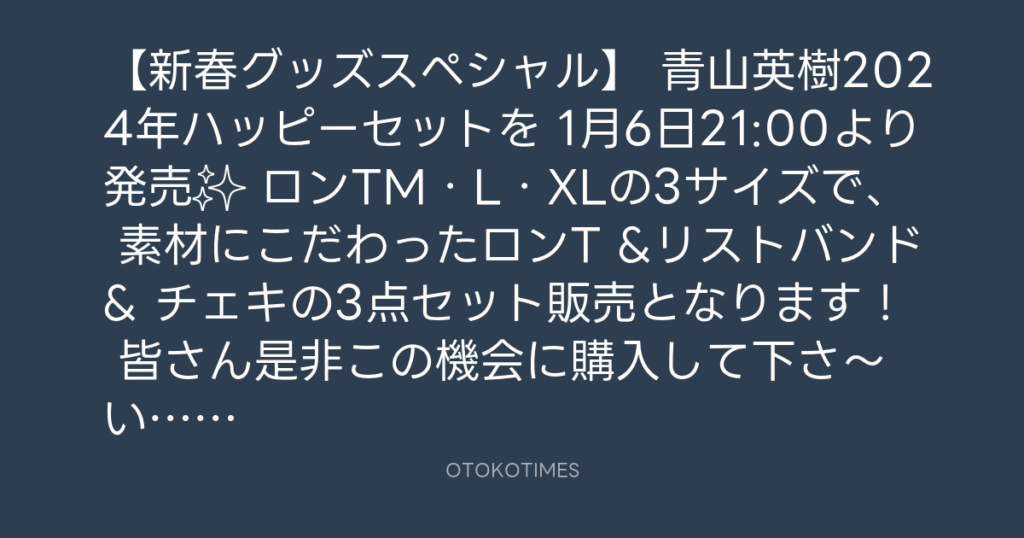 【🐲新春グッズスペシャル🐲】 青山英樹2024年ハッピーセットを 1月6日21:00より発... -