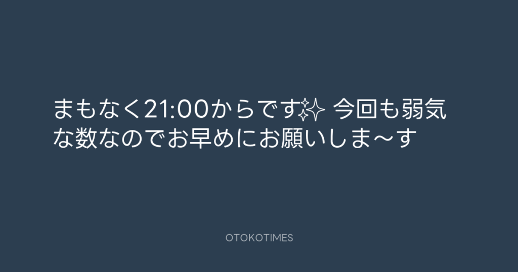 まもなく21:00からです✨ 今回も弱気な数なのでお早めにお願いしま〜す😉 -