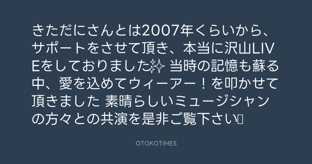 きただにさんとは2007年くらいから、 サポートをさせて頂き、本当に沢山LIVEをして... -