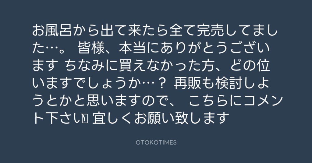お風呂から出て来たら全て完売してました…。 皆様、本当にありがとうございます😭 ... -