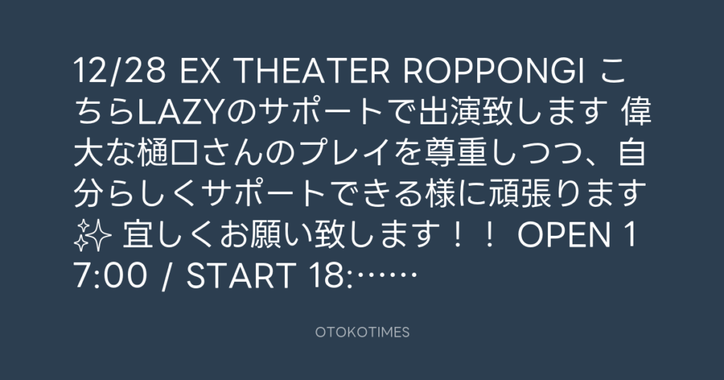12/28 EX THEATER ROPPONGI こちらLAZYのサポートで出演致します🥁 偉大な樋口さん... -